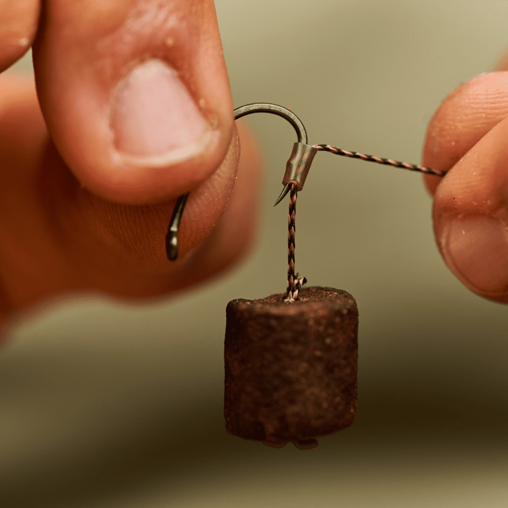 Utiliza el mismo cebo con el que hayas realizado tu cebadero, sino, utiliza cebos de colores muy parecidos a las partículas que componen tu cebadero. Hará que los peces estén comiendo con confianza.